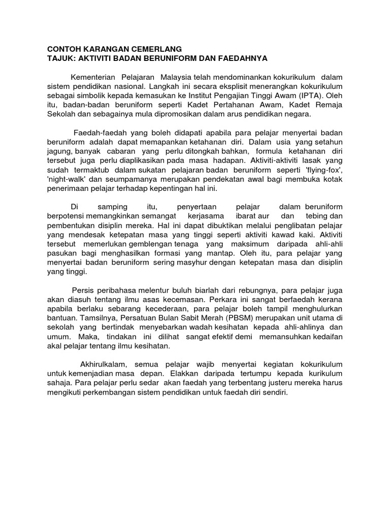 Contoh Karangan Spm Kegiatan Badan Beruniform Dan Faedahnya Pdf