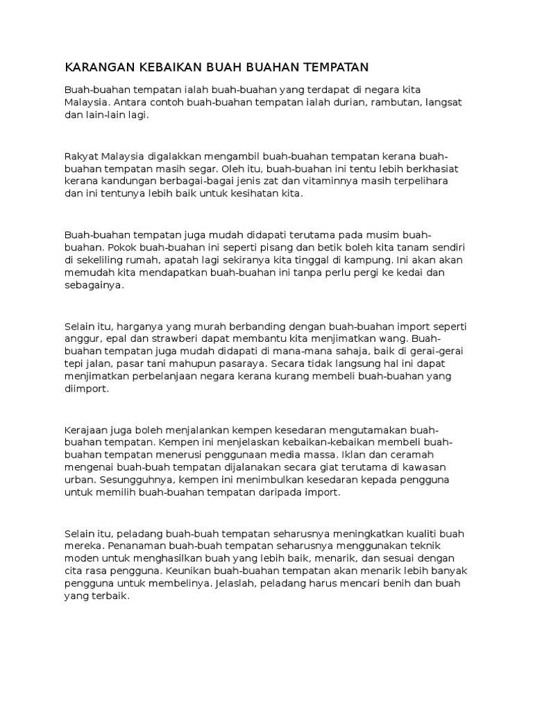 Karangan Kebaikan Buah Buahan Tempatan Pdf